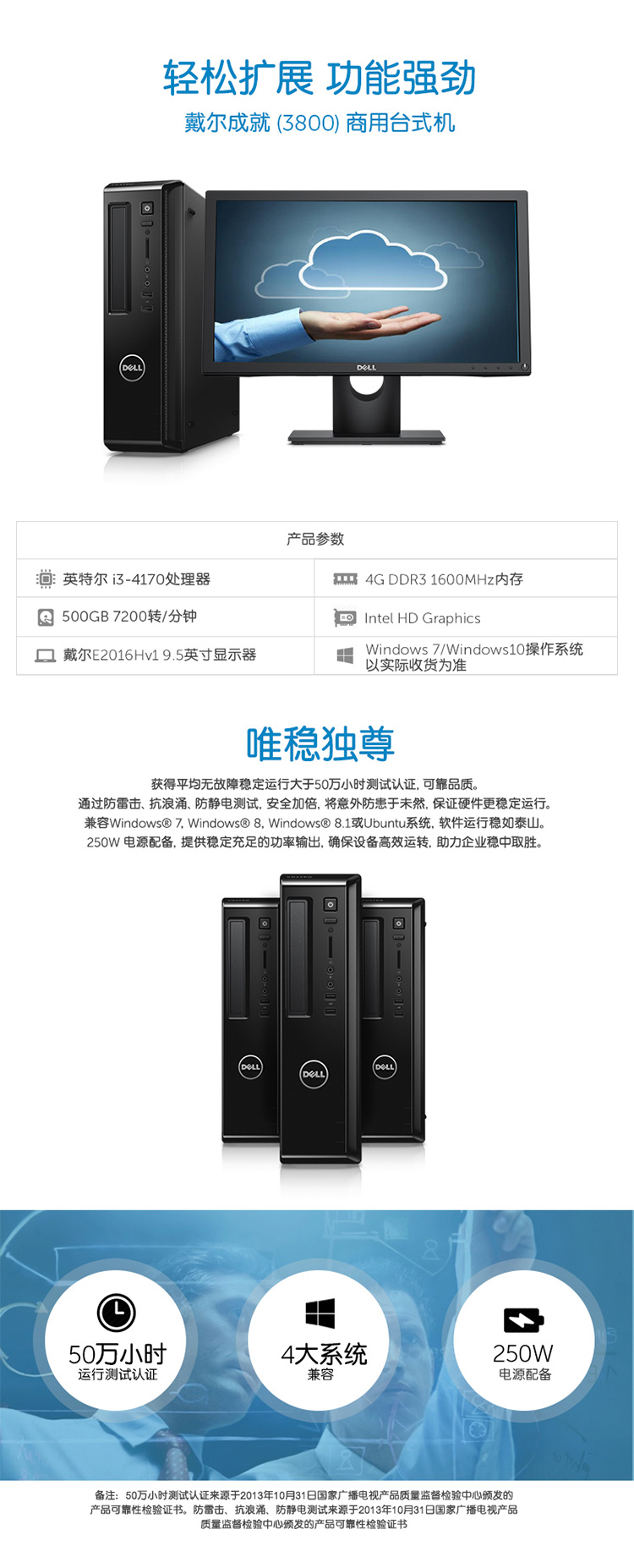 戴尔(DELL)Vostro 3800-R6308 台式电脑 (i3-4170 4G 500G DVD 三年上门 三年硬盘保留)黑 戴尔(DEL
